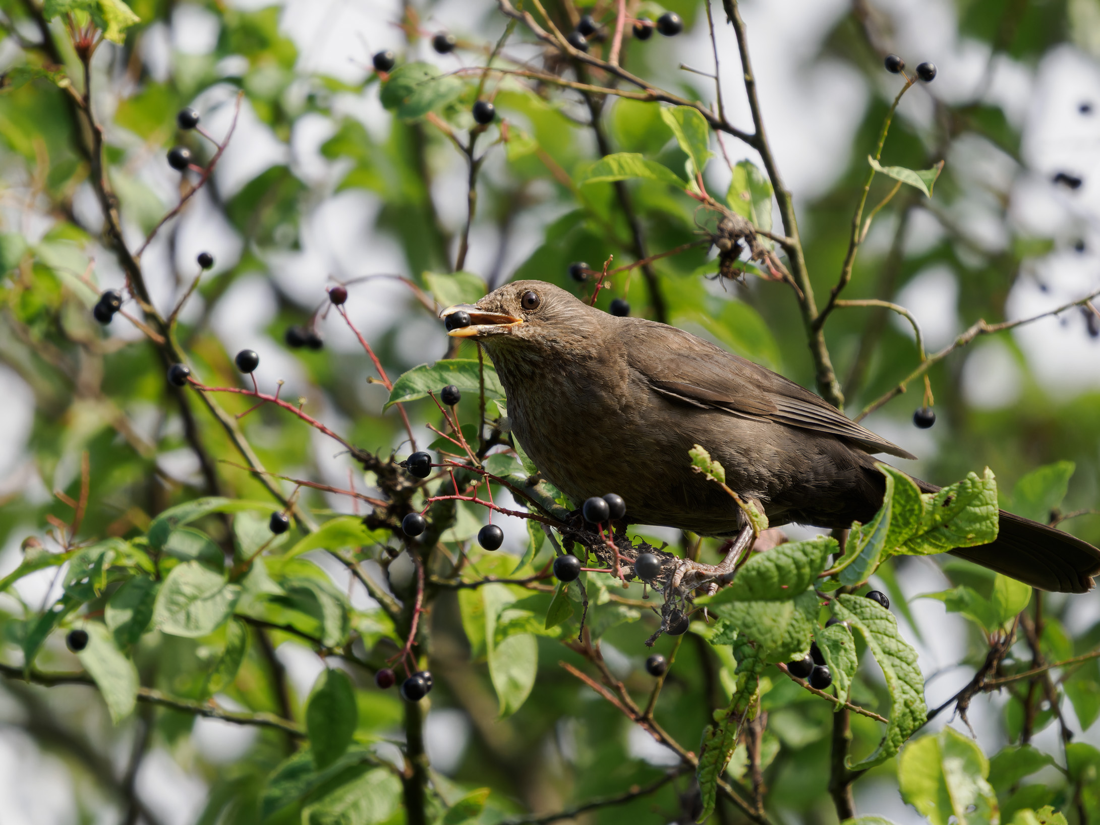 Eine Amsel mit einer Vogelbeere im Schnabel. -> INFOS | © Ernst Wilhelm Grüter, -> E-Mail