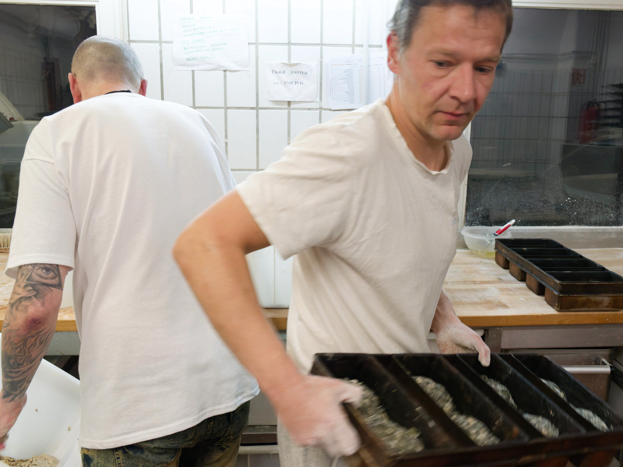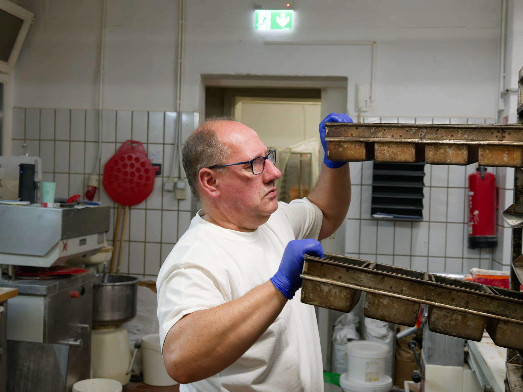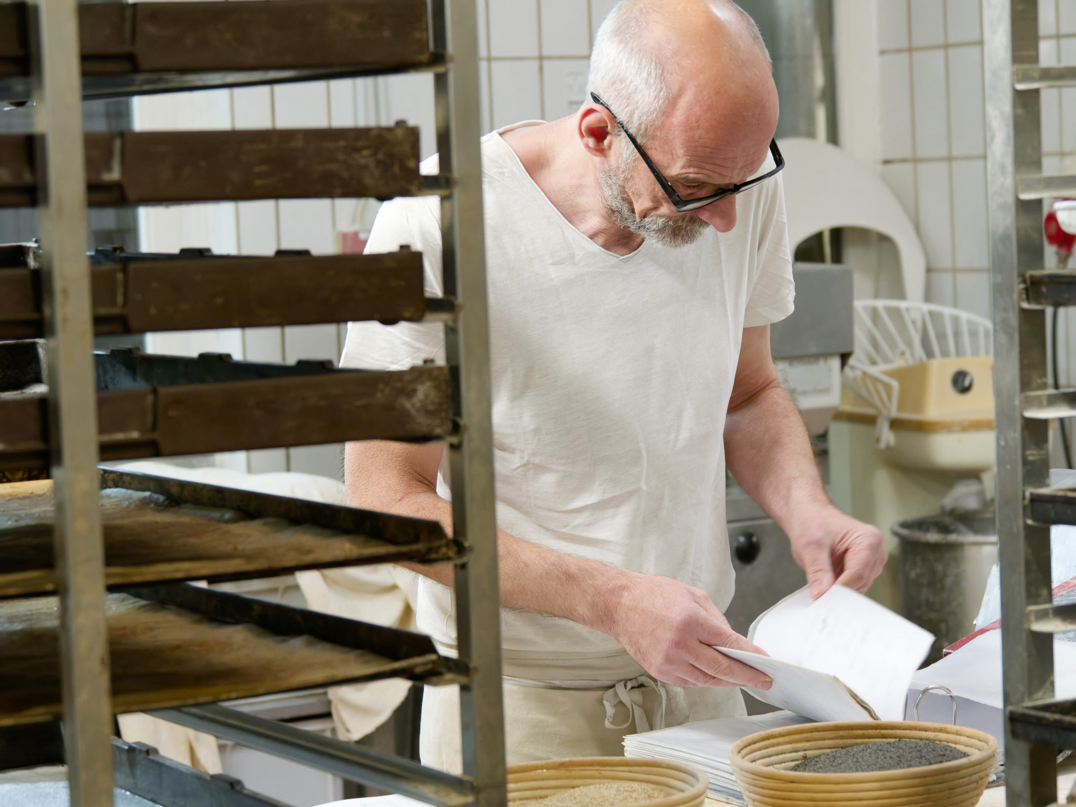 Der Bäcker holt sich Formen für Kasternbrote.