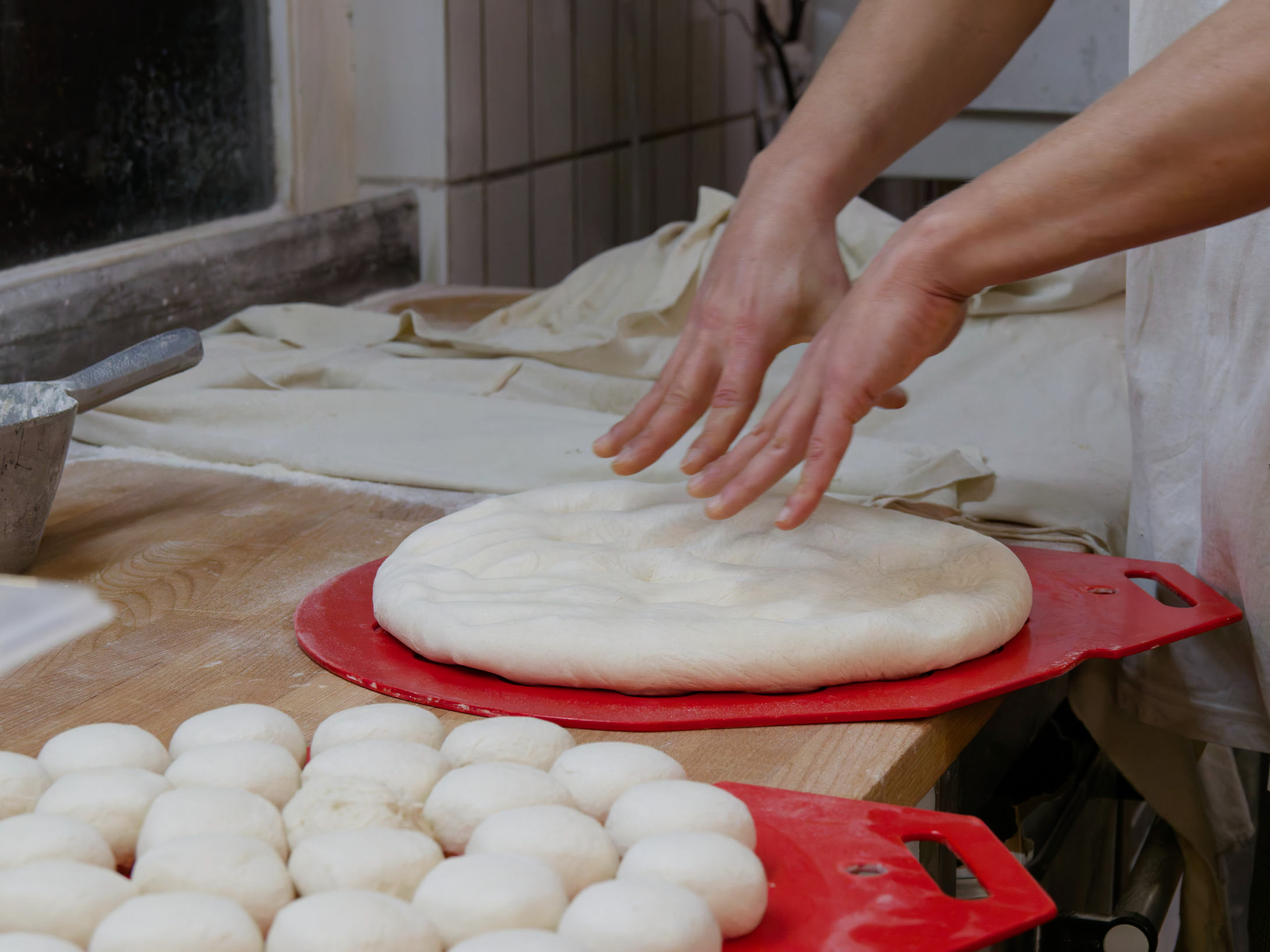 Ein Brotteigling wird portioniert.