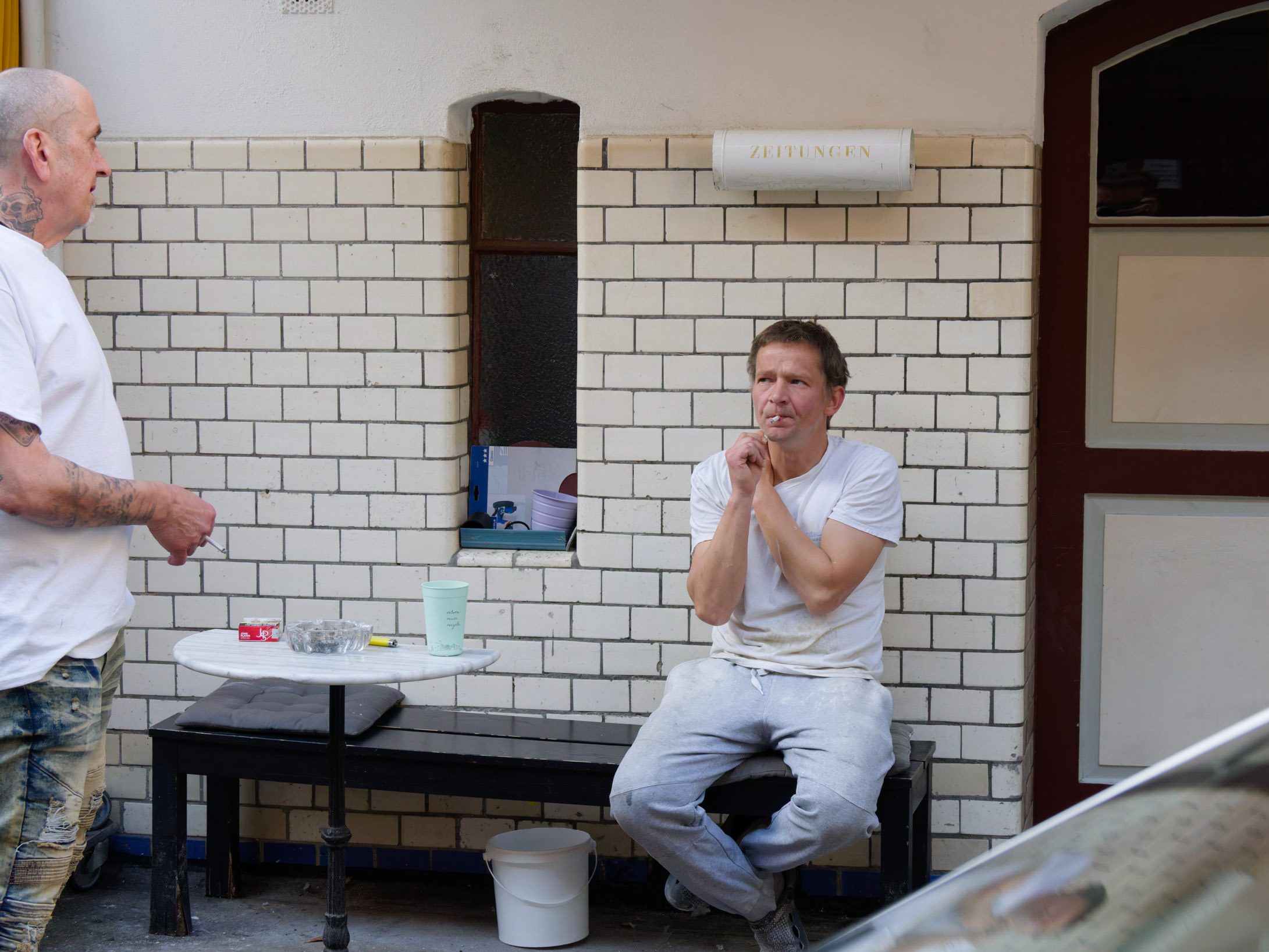 Ein kurzer Austausch während der Raucherpause