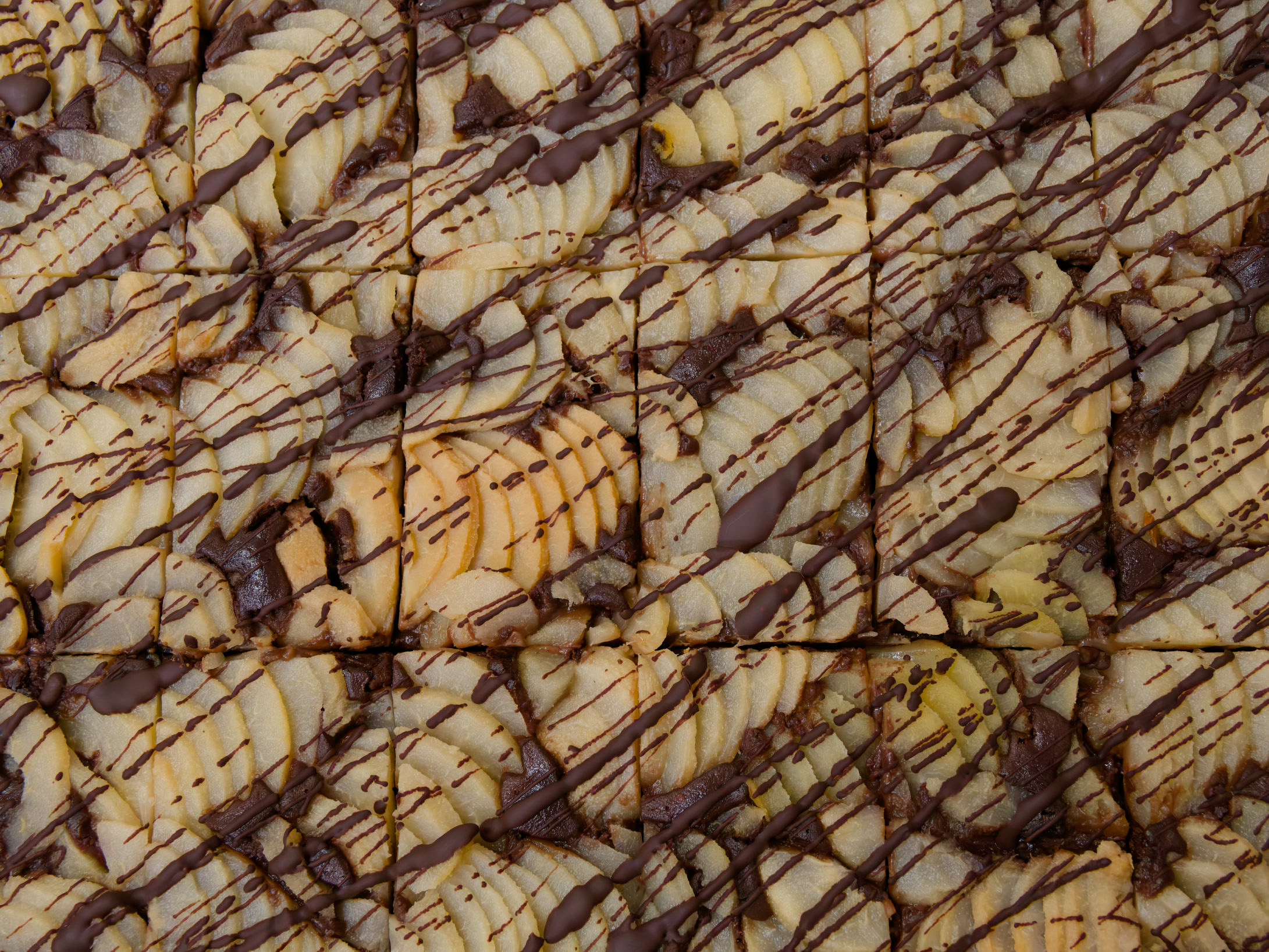 Die Schokoladenseite des Birne-Schokoladen Kuchens.